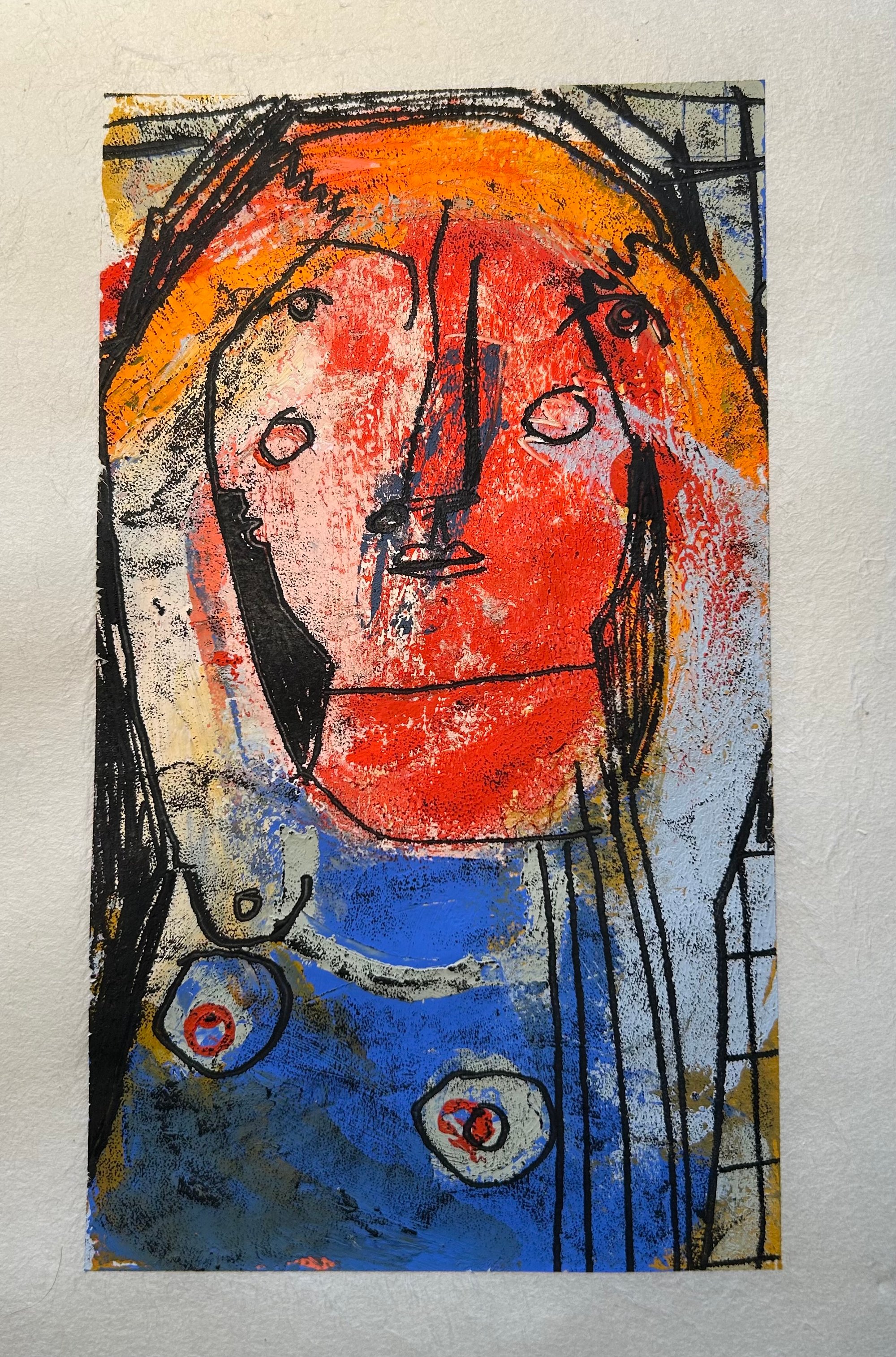 Acrylic gouache and hand monoprint on fine printing paper 4 x 7