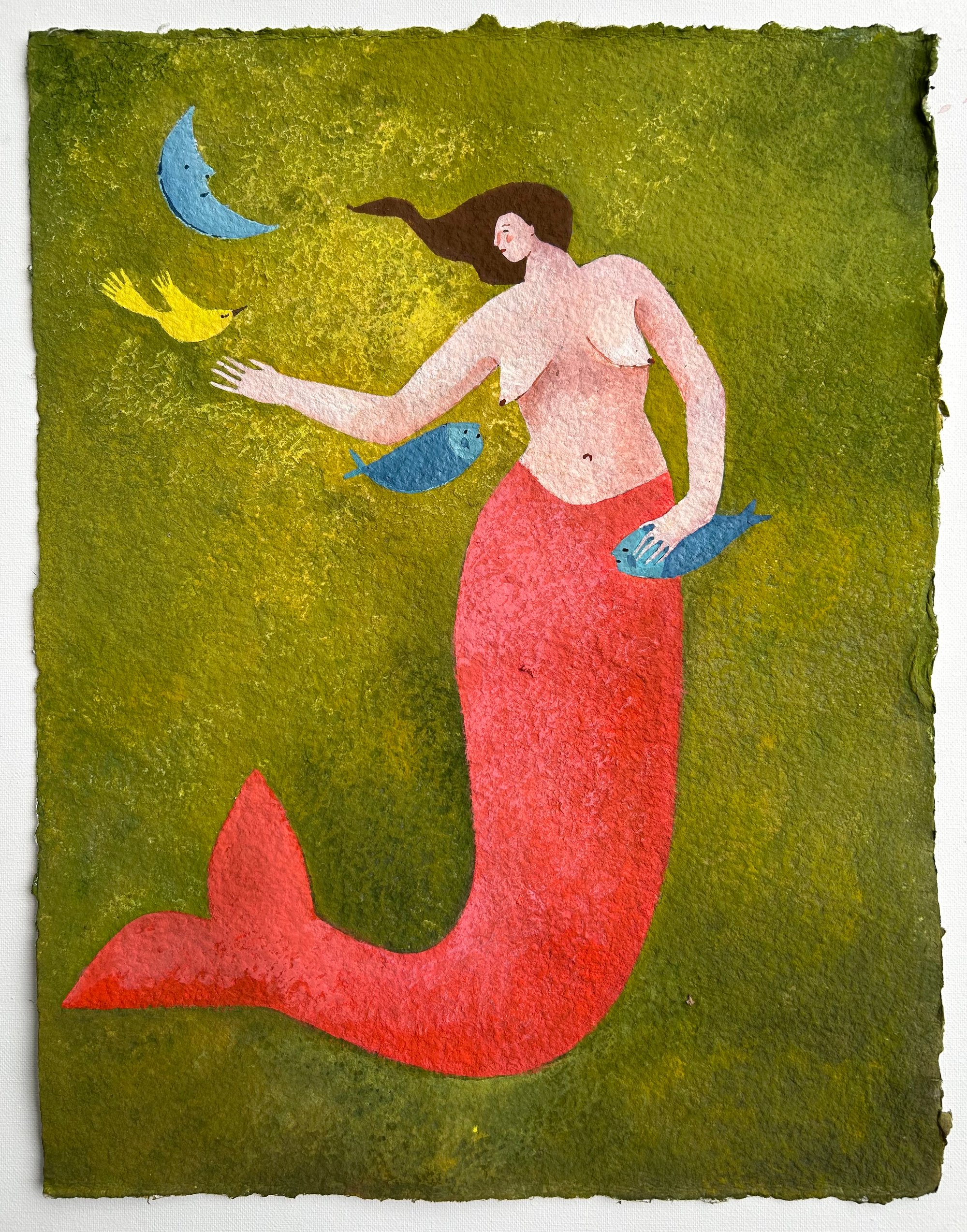 Beauty beneath In gouache acrylic on shizen handmade Indian paper 13.5 x 18