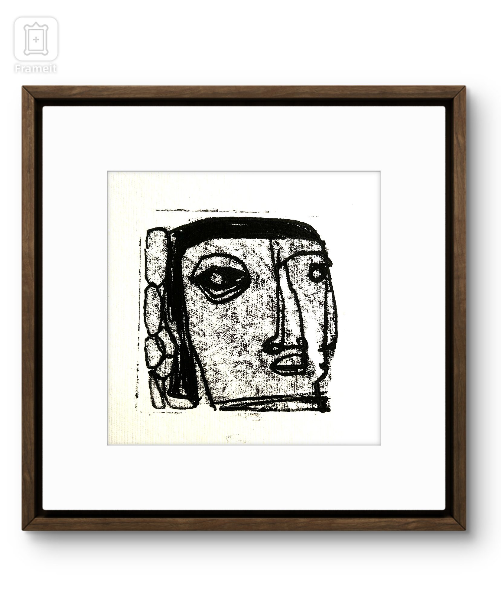A hand monoprint piece done with ink paint on cotton paper 4 x 4