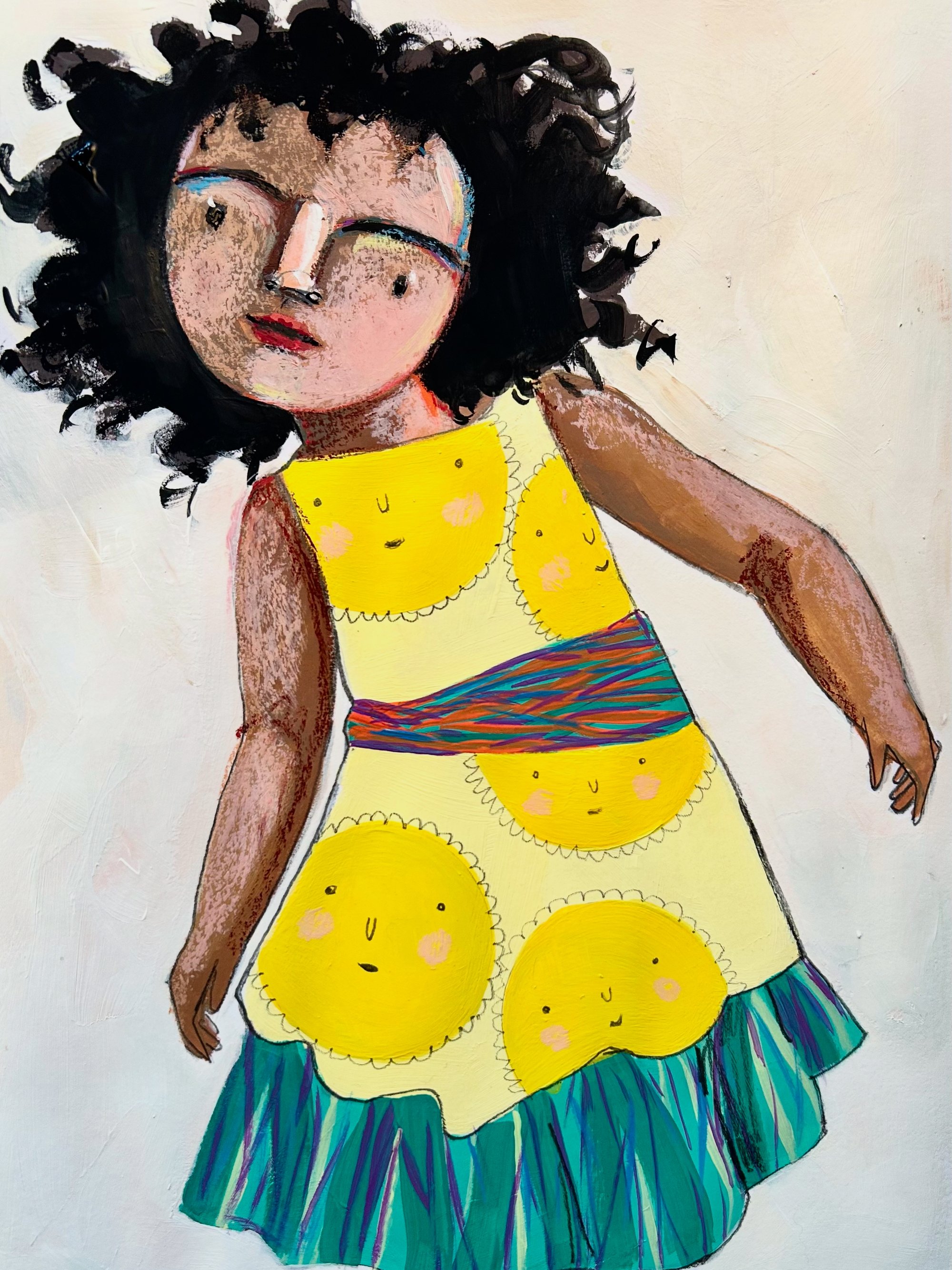 In acrylic gouache and pastels are mixed media paper 8.5 x 14