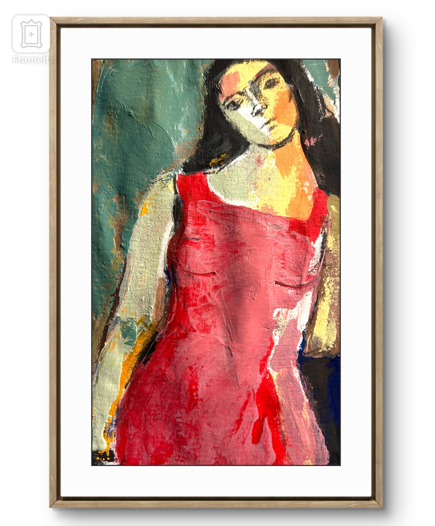 In acrylic gouache, charcoal, and pastel on paper 3.5 x 5