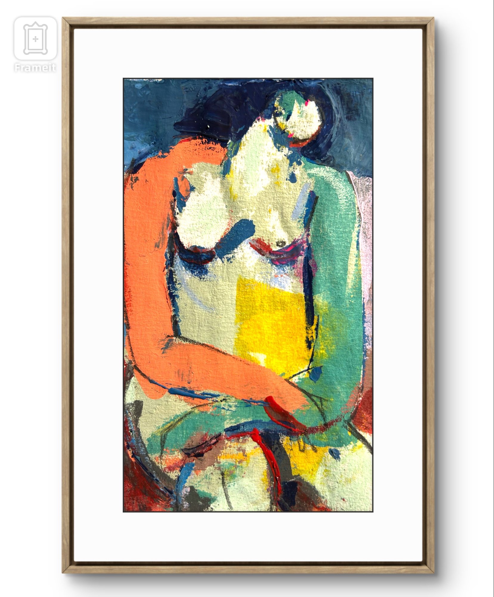 In acrylic gouache, charcoal, and pastel on paper 3.5 x 5