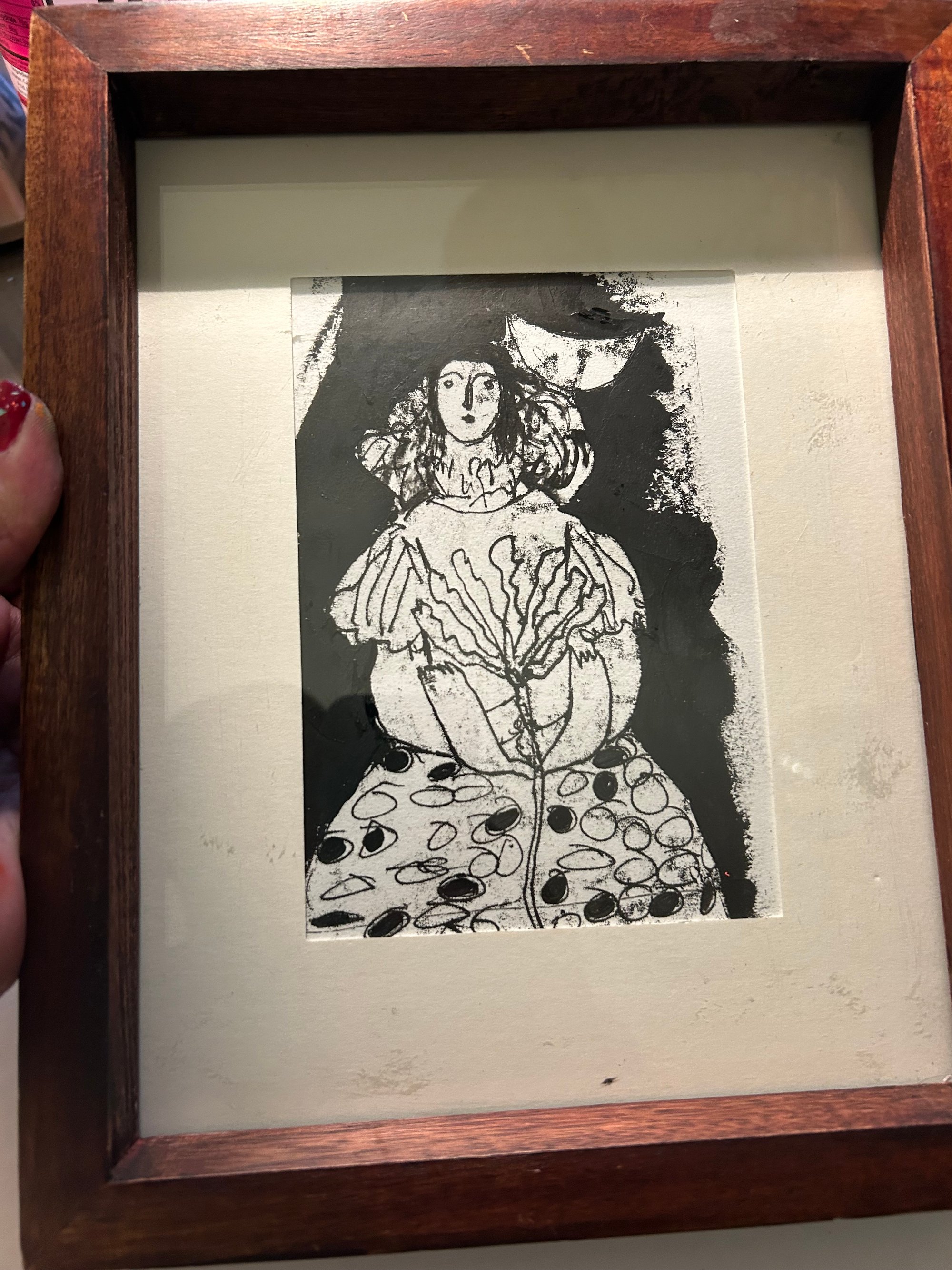 This beautiful piece is done in hand, monotype ink on printing paper 6 x 10