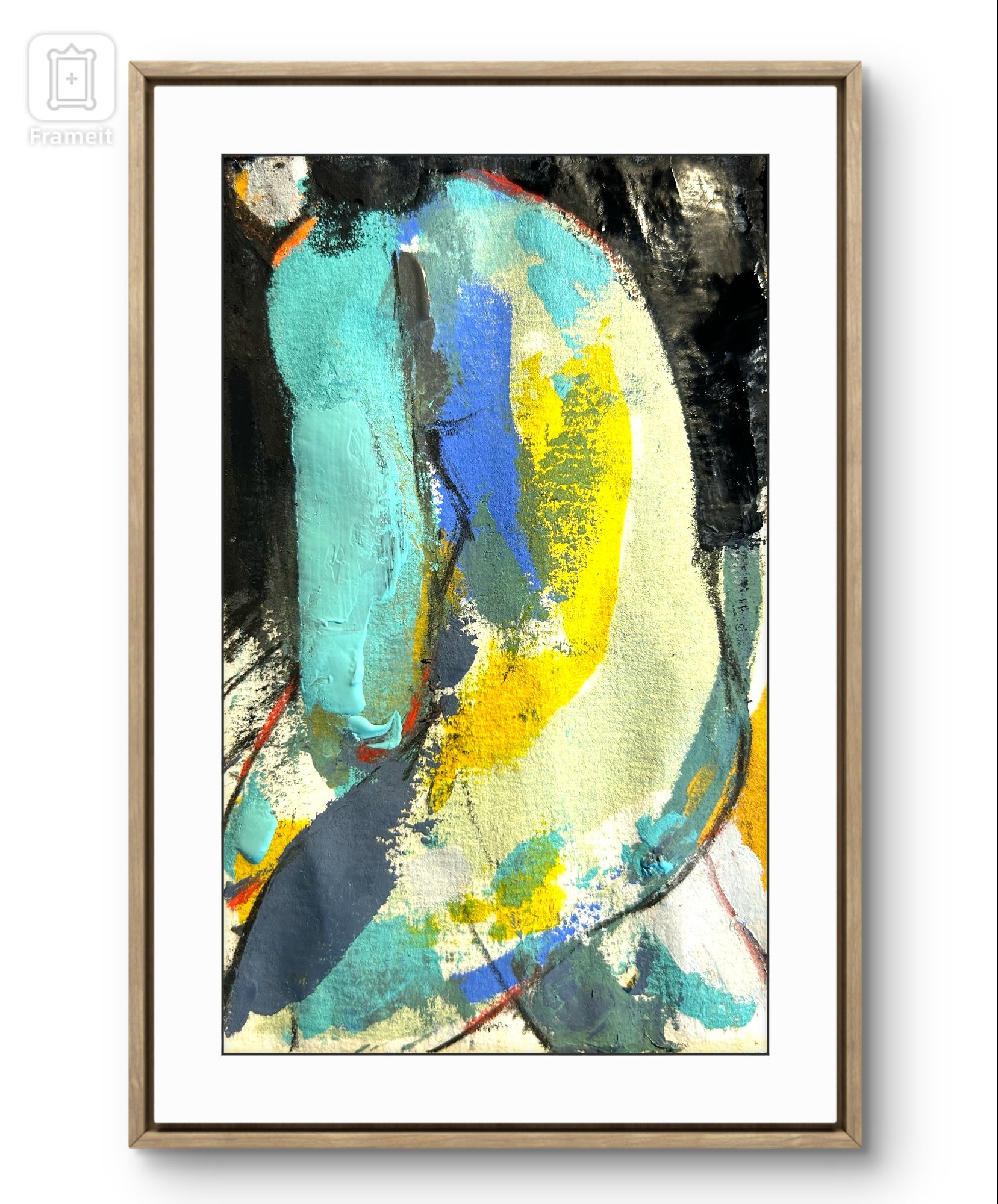 In acrylic gouache, charcoal, and pastel on paper 3.5 x 5